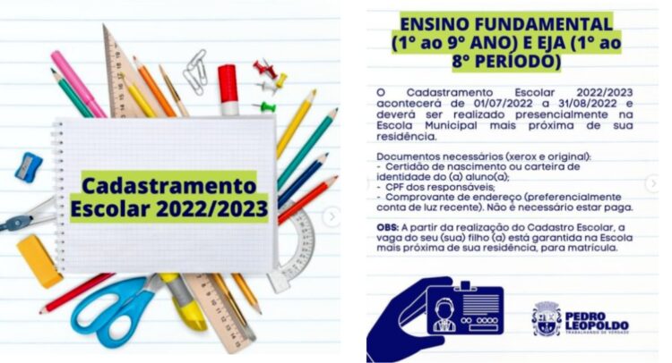 Municípios Granbel Atenção às informações sobre o Cadastramento Escolar 2022/2023, em Pedro Leopoldo Alice Crepaldi 01/08/2022 0 Comentários