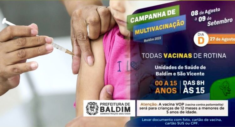 Terá início entre os dias 8 de agosto e 9 de setembro, a Campanha Nacional de Vacinação contra a Poliomielite para crianças de 12 meses a 5 anos, além da Campanha de Multivacinação para Atualização da Caderneta de Vacinação da Criança e do Adolescente com até 15 anos de idade.