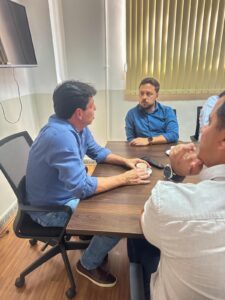 O prefeito Dinis Pinheiro recebeu o presidente da entidade e prefeito de Nova Lima, João Marcelo Dieguez, e o vice-presidente e prefeito de Florestal, Juninho. O encontro foi marcado pela apresentação de importantes obras e investimentos que estão transformando a cidade.